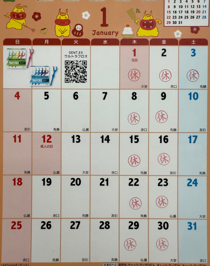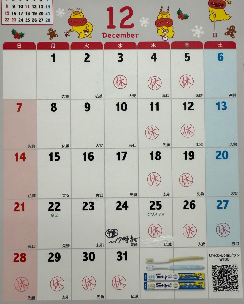 12月、1月(年末年始)の診療日程(休診日)のお知らせ